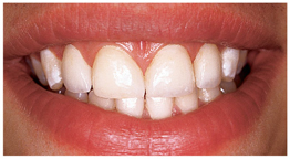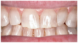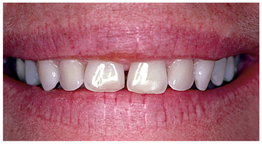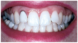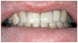 Brenda did not like the appearance of the crown on her upper right incisor. It looked too opaque and had a dark shadow at the gum line..