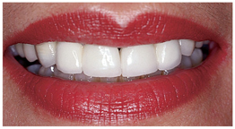 Direct bonding on six upper teeth in one visit masked the discolouration and reshaped teeth, giving a big boost to Leslie's smile and confidence.